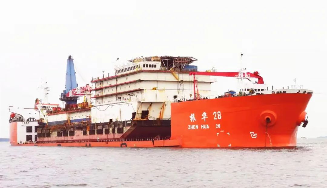 7月3日,“振华28”轮在新加坡锚地顺利完成铺管船浮装作业。