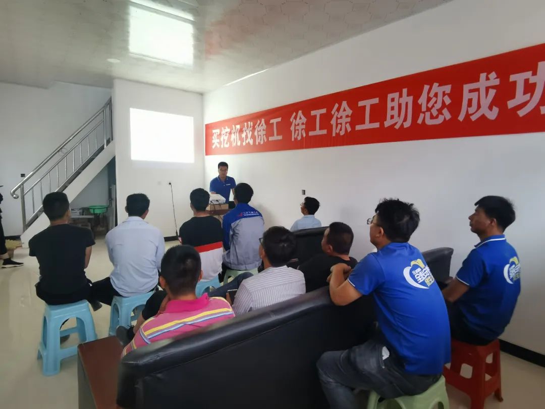 在甘肃定西一家工地的会议室里,来自三河飞翔工程公司的挖掘机操作手们正在接受维保知识培训,“授课”的老师,是徐工挖机定西服务团队。