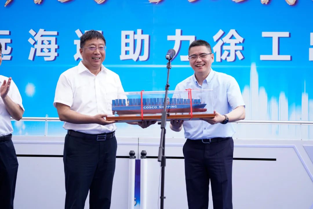 徐工机械总裁陆川与中远海运集运副总经理钱明互赠情谊礼物