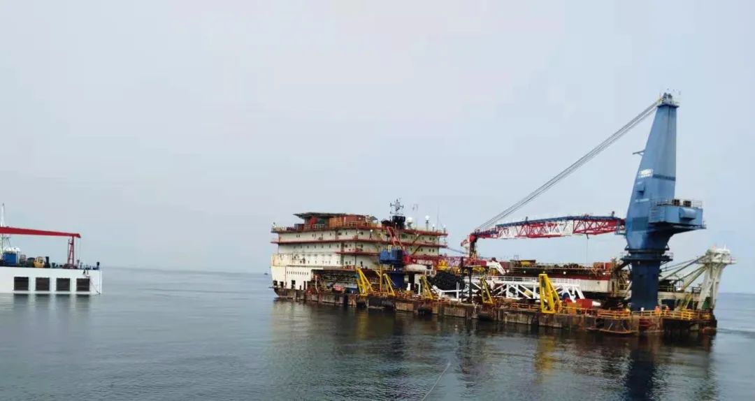 7月20日,“振华28”轮在远东海域成功浮卸一艘铺管船。