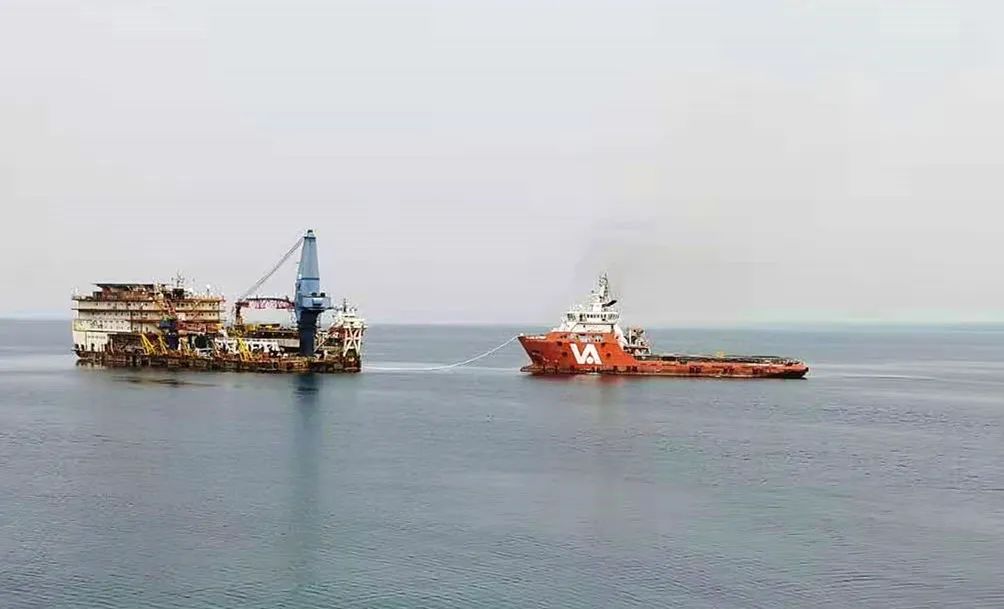 “振华28”轮抵达锚地后随即接受当地防疫问询、检查、测试并办理联检手续。在船长的统筹安排和精心部署下,全体船员团结一致、齐心协力,克服防疫压力、恶劣天气等困难,抓住低平潮时水流流速最小时间,顺利完成铺管船浮卸任务。