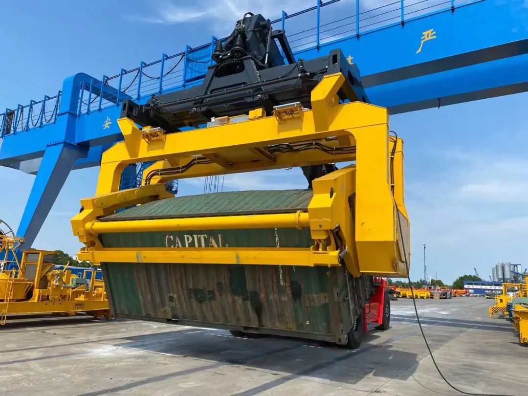 近日,由上海港机重工研发制造的360°翻转吊具顺利完成全部功能测试并正式下线。