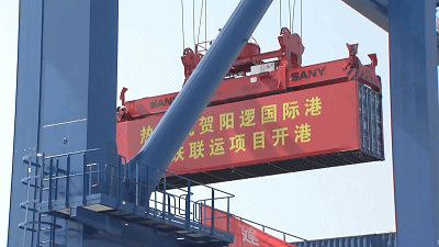 透过现场屏幕连线港口、铁路画面,在项目合作方代表报告准备就绪之后,应勇书记发出一声指令——阳逻国际港集装箱水铁联运项目开港通车!