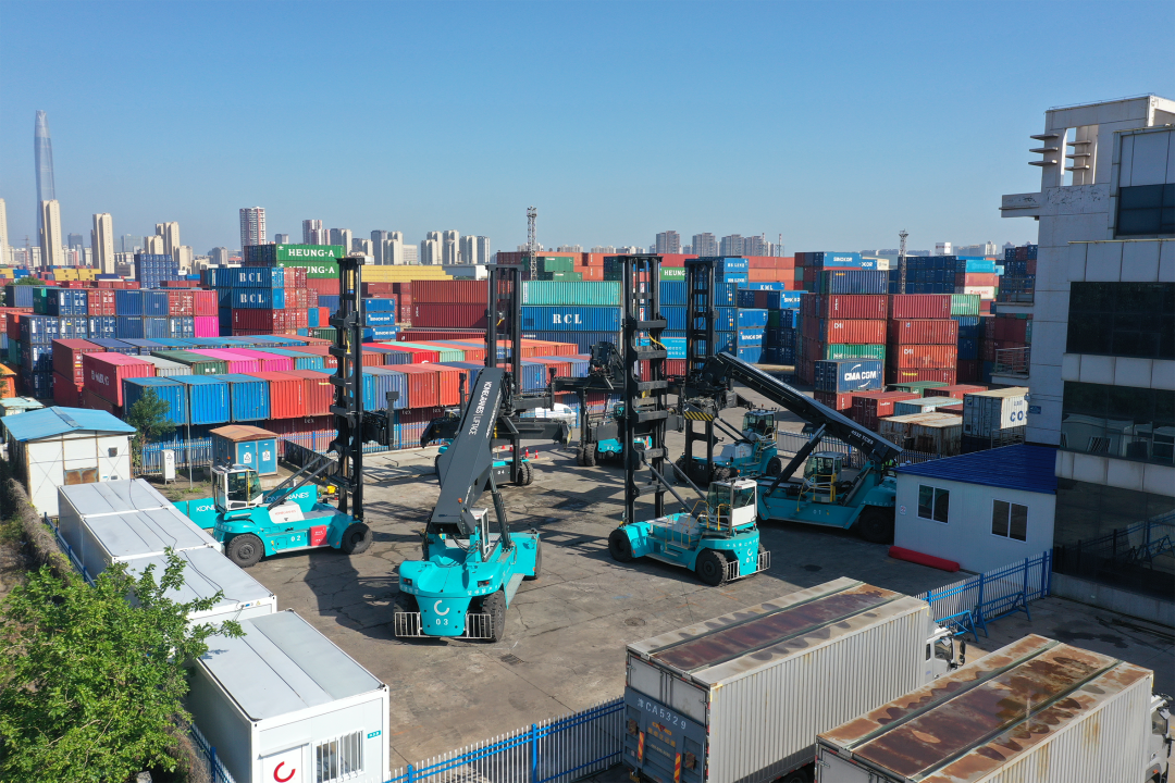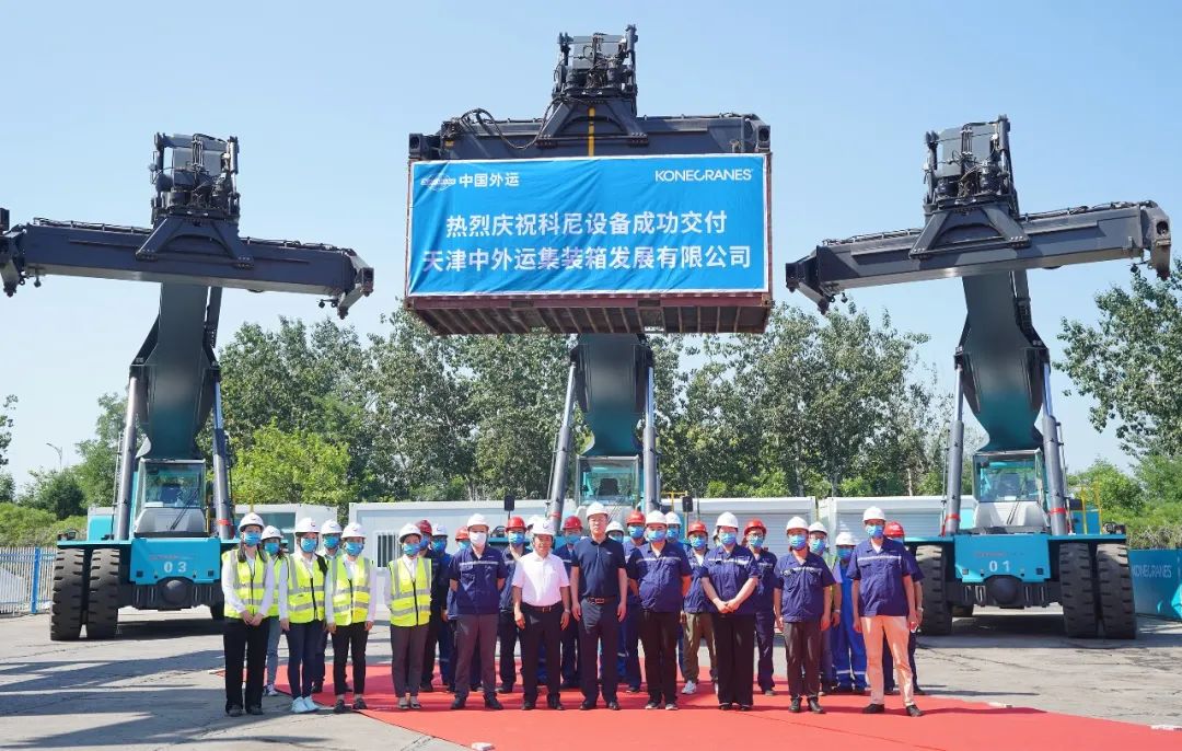 7月7日,天津新港,七台崭新的科尼设备列队完毕,正式交付天津中外运集装箱发展有限公司(以下简称天津中外运),助力客户开启数字化堆场建设新篇章。