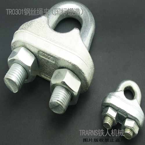 1.铁人机械钢丝绳夹(国标锻造)特点:满足GB/T5976-2006, 与钢丝绳栓结稳固。内部组织结构紧密,机械性能优。 相较部分灰铸铁KTH绳夹,钢丝绳夹(国标锻造)经破坏性重压试验,夹座部分产生塑性变形,不会破碎。